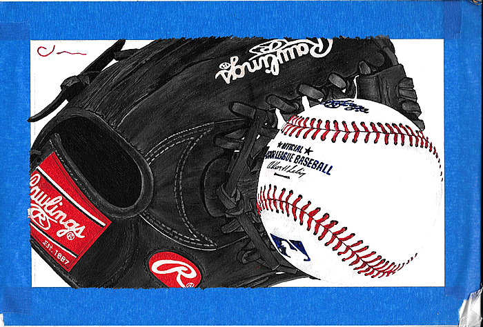 A patron planning a trip to the Baseball Hall of Fame Induction Ceremonies in Cooperstown, NY, asked me to create something special to have autographed by one of the Hall members. I painted and delivered “ball and glove” leaving the heart of the baseball untouched and the protective tape still in place. The painting was successfully signed by Hall of Famer Ferguson Jenkins during the 2016 Induction Ceremony weekend. Later the painting was finished and framed.